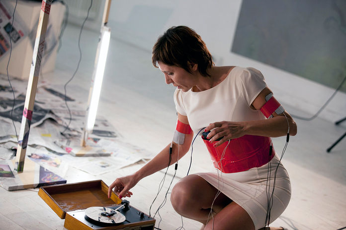 This is probably my most famous work, ad it’s a video-performance art piece, which means that it’s a performative action made for the camera. During the live performative version in front of an actual audience, I wear therapy electrodes on both arms, set to maximum voltage, and try to put on makeup.