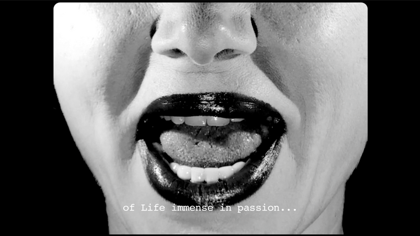 This is a performance of visual poetry in which the words of a poet are transformed into musical notes and images. The sounds that we hear, and the visual story that unfolds in front of us, do not depend on a musical or narrative intention; are solely determined by the sequence of letters, words, verses, and expressive pauses.