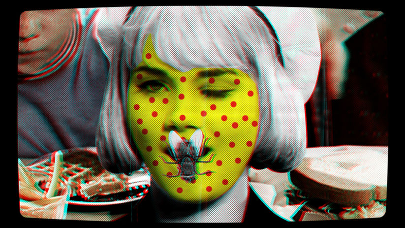 I graphically isolated these female figurines, literally cutting them out of their context like paper dolls, to then reassemble them in a digital landscape that is all mine, sadistically anaglyphic, three-dimensionally hallucinatory, where the global market becomes a regressive hypnosis session, a seance, a lucid dream powered by chemicals. The Western cultural model is white sugar: artificial pleasure that creates chemical dependence, a synthetic alteration of taste and perception.
